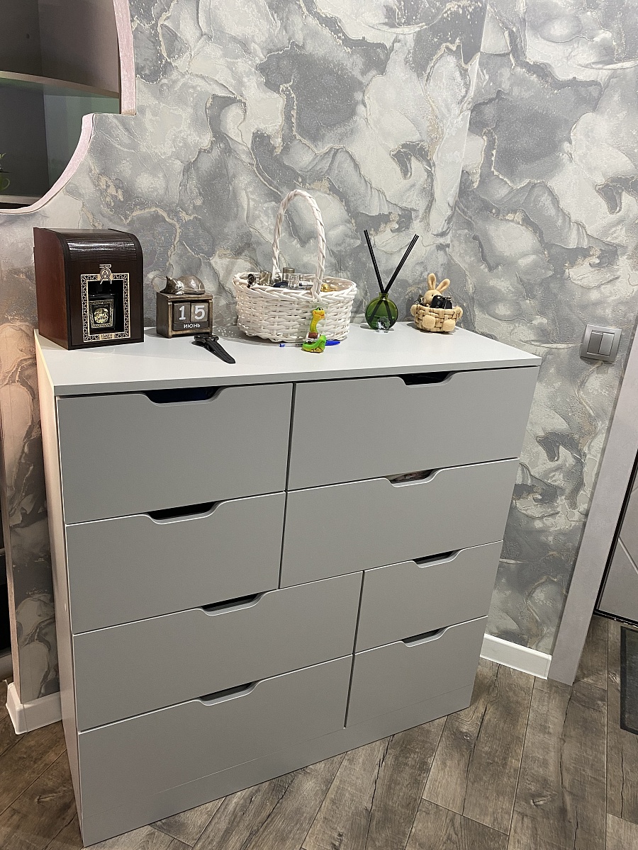 Хочу оставить отзыв о данном комоде. Заказывали через сайт с доставкой дома в феврале 2025 года. Комод искали очень долго, так как нигде именно серого цвета не было, сколько магазинов и сайтов не пересмотрела, еще что очень нравится в данном магазине, что можно подогнать мебель по своим размерам, что мы и сделали с комодом) Комод идеально подошел по цвету к гардеробной, просто один в один. Сам комод очень красивый, вместительный и функциональный. Доставка была осуществлена во время. Все комплектующие к комоду были в наличии. Очень довольна покупкой данного комода. Спасибо большое «Бестмебель»! Вернемся к вам, еще и не раз!