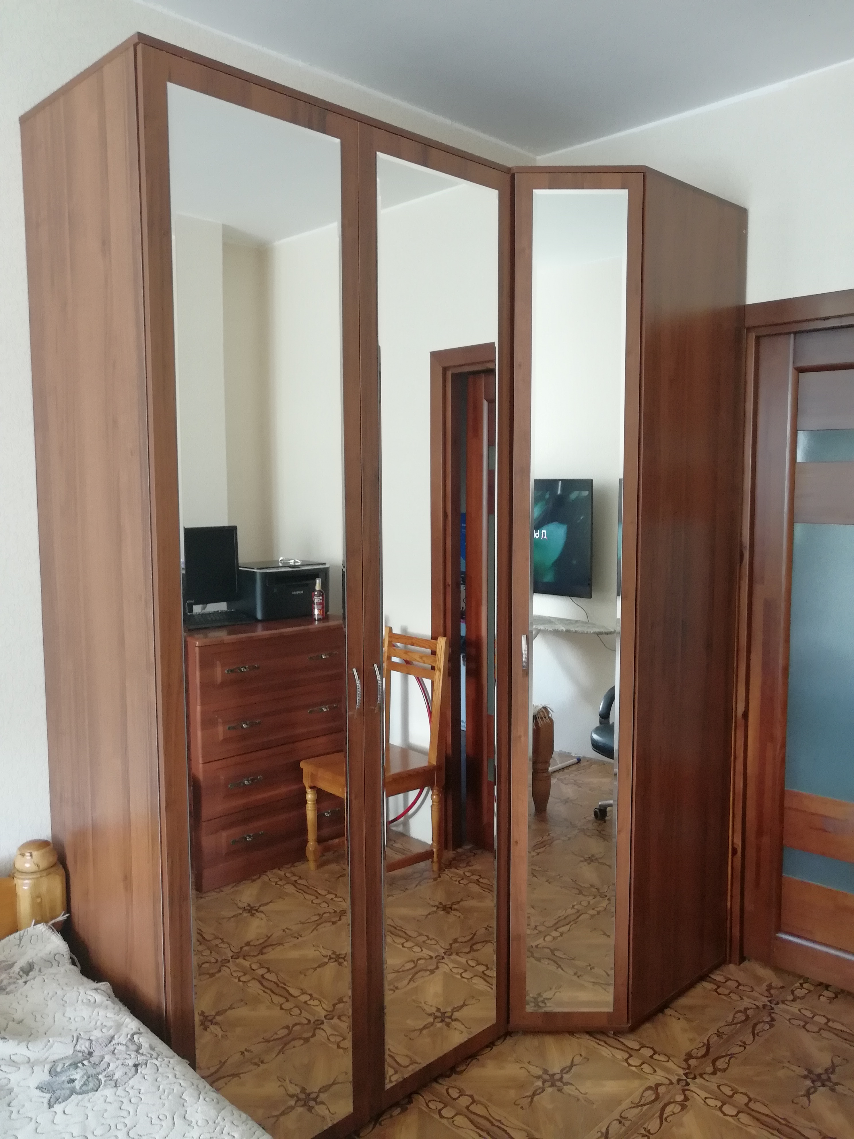 Всем доброго времени суток! Хочу оставить свой отзыв об этом угловом шкафчике. Мы брали его в сочетании с шкафом Дуэт двухдверый. Как видно на фото, шкафы идеально вписались в наш угол, благодаря тому, что на сайте можно не только подобрать желаемую расцветку, но и нужные размеры. Так же можно выбрать наполненность шкафа. Все зависит от Вашей фантазии. Ставлю все звезды, т.к Цена - Качество нас полностью устроило. Проблем при сборе изделий не возникло (муж собирал сам, дети помогали))).
